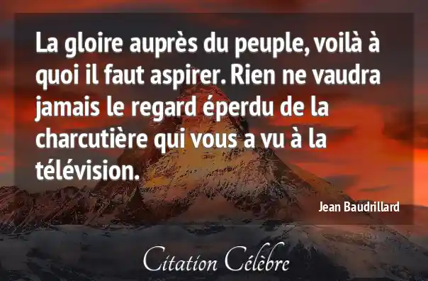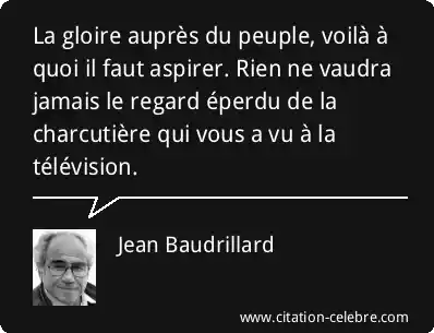 La gloire auprès du peuple, voilà à quoi il faut aspirer. Rien ne vaudra jamais le regard éperdu de la charcutière qui vous a vu à la télévision.