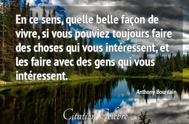 En ce sens, quelle belle façon de vivre, si vous pouviez toujours faire des choses qui vous intéressent, et les faire avec des gens qui vous intéressent.