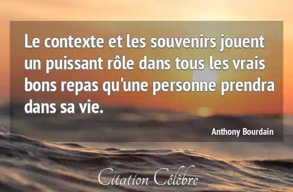 Le contexte et les souvenirs jouent un puissant rôle dans tous les vrais bons repas qu'une personne prendra dans sa vie.