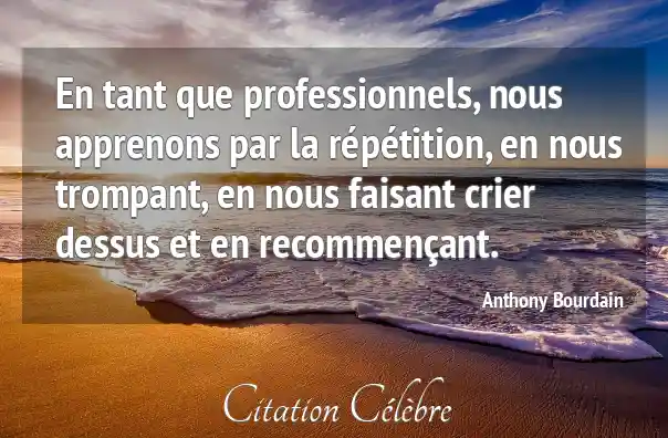 En tant que professionnels, nous apprenons par la répétition, en nous trompant, en nous faisant crier dessus et en recommençant.