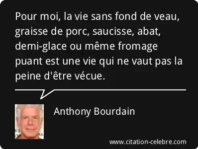 Pour moi, la vie sans fond de veau, graisse de porc, saucisse, abat, demi-glace ou même fromage puant est une vie qui ne vaut pas la peine d'être vécue.