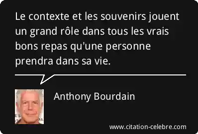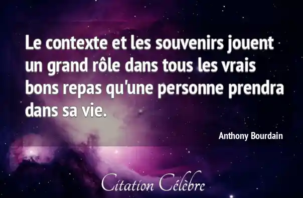 Le contexte et les souvenirs jouent un grand rôle dans tous les vrais bons repas qu'une personne prendra dans sa vie.