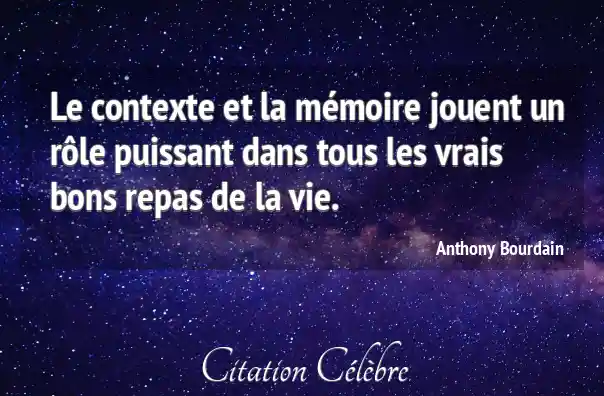 Le contexte et la mémoire jouent un rôle puissant dans tous les vrais bons repas de la vie.
