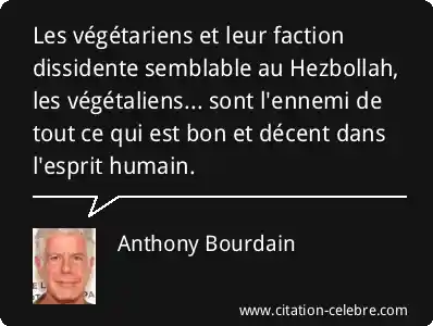 Les végétariens et leur faction dissidente semblable au Hezbollah, les végétaliens... sont l'ennemi de tout ce qui est bon et décent dans l'esprit humain.