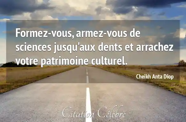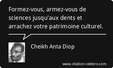 Cette puissante formule de Cheikh Anta Diop est un appel vibrant à l'émancipation intellectuelle et culturelle. Elle signifie que pour reconquérir et valoriser l'héritage culturel africain, souvent marginalisé ou déformé par l'histoire, il est impératif d'acquérir une formation solide, en particulier dans les domaines scientifiques et historiques. La science est présentée comme l'outil essentiel pour l'analyse, la vérification, et la restauration de la vérité historique et culturelle.