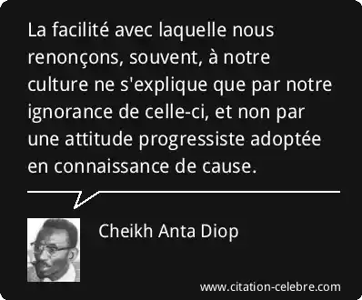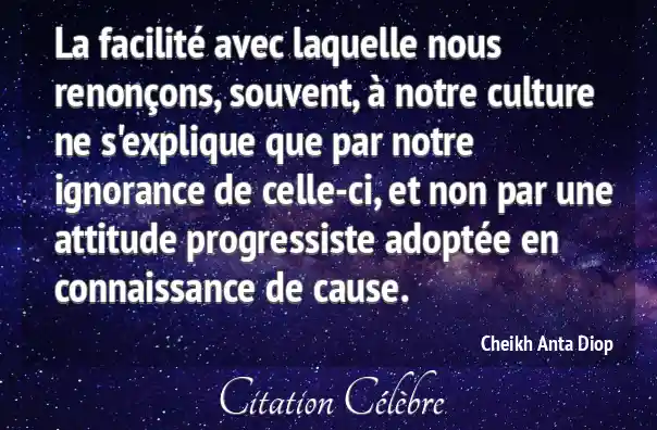 La facilité avec laquelle nous renonçons, souvent, à notre culture ne s'explique que par notre ignorance de celle-ci, et non par une attitude progressiste adoptée en connaissance de cause.