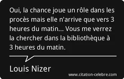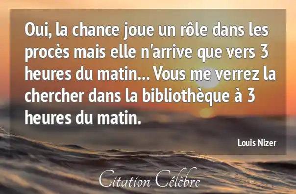 Oui, la chance joue un rôle dans les procès mais elle n'arrive que vers 3 heures du matin... Vous me verrez la chercher dans la bibliothèque à 3 heures du matin.