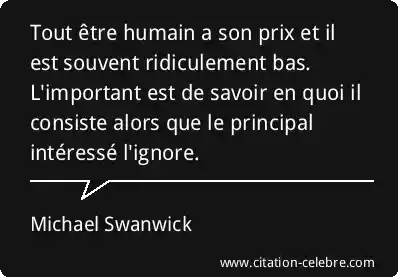 Tout être humain a son prix et il est souvent ridiculement bas. L'important est de savoir en quoi il consiste alors que le principal intéressé l'ignore.
