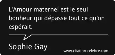 L'Amour maternel est le seul bonheur qui dépasse tout ce qu'on espérait.