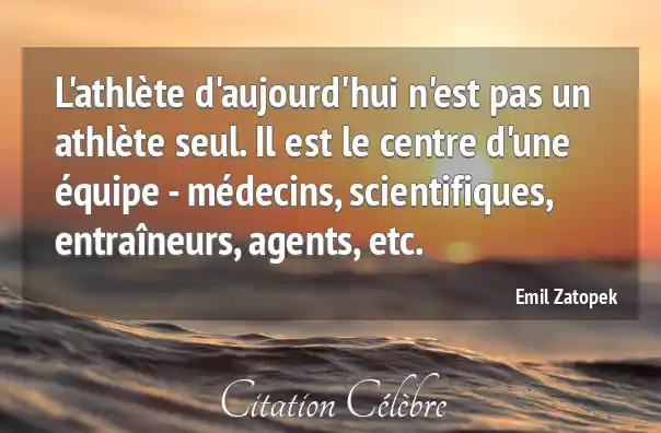 L'athlète d'aujourd'hui n'est pas un athlète seul. Il est le centre d'une équipe - médecins, scientifiques, entraîneurs, agents, etc.