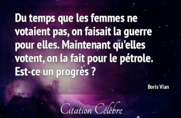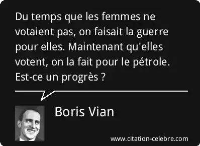 Du temps que les femmes ne votaient pas, on faisait la guerre pour elles. Maintenant qu'elles votent, on la fait pour le pétrole. Est-ce un progrès ?