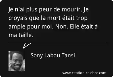 Je n'ai plus peur de mourir. Je croyais que la mort était trop ample pour moi. Non. Elle était à ma taille.