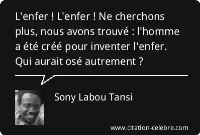 L'enfer ! L'enfer ! Ne cherchons plus, nous avons trouvé : l'homme a été créé pour inventer l'enfer. Qui aurait osé autrement ?