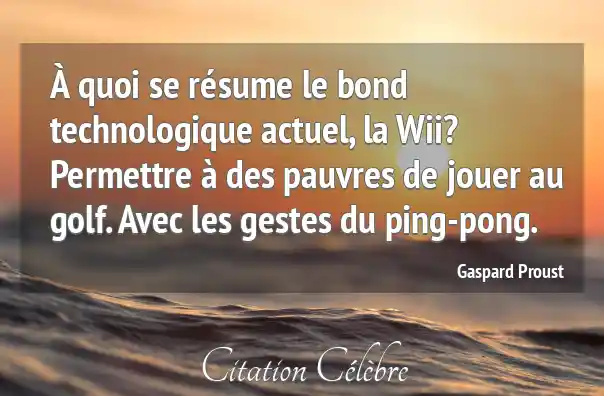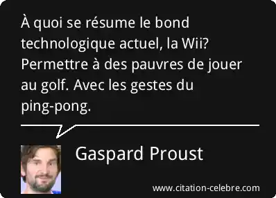 À quoi se résume le bond technologique actuel, la Wii? Permettre à des pauvres de jouer au golf. Avec les gestes du ping-pong.