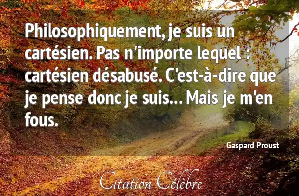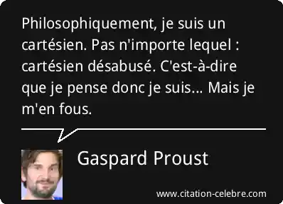Philosophiquement, je suis un cartésien. Pas n'importe lequel : cartésien désabusé. C'est-à-dire que je pense donc je suis... Mais je m'en fous.