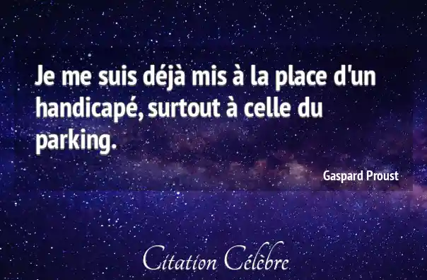 Je me suis déjà mis à la place d'un handicapé, surtout à celle du parking.