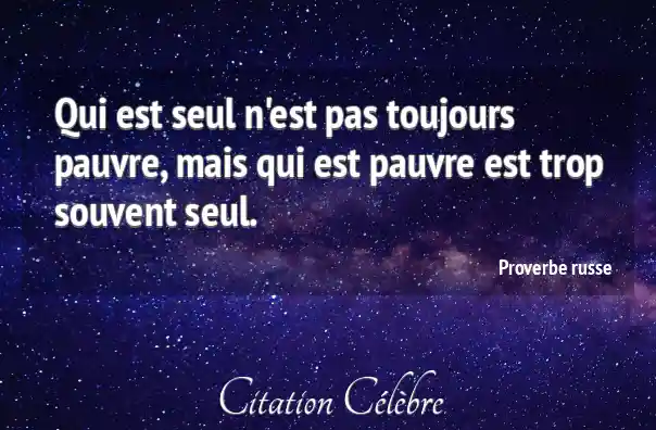 Qui est seul n'est pas toujours pauvre, mais qui est pauvre est trop souvent seul.