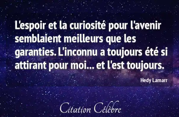 L'espoir et la curiosité pour l'avenir semblaient meilleurs que les garanties. L'inconnu a toujours été si attirant pour moi... et l'est toujours.
