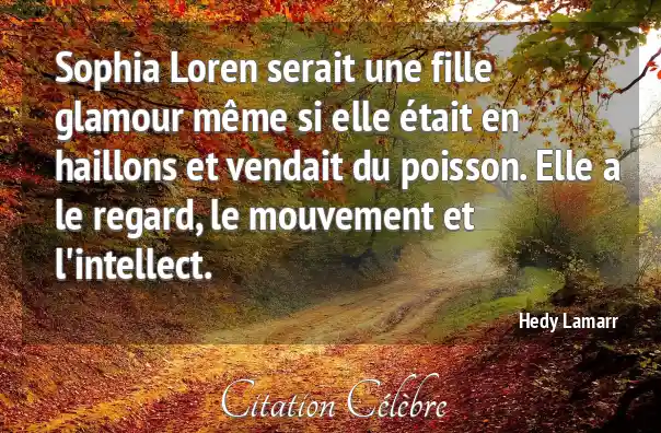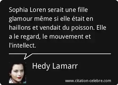 Sophia Loren serait une fille glamour même si elle était en haillons et vendait du poisson. Elle a le regard, le mouvement et l'intellect.