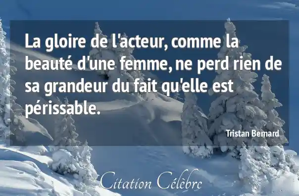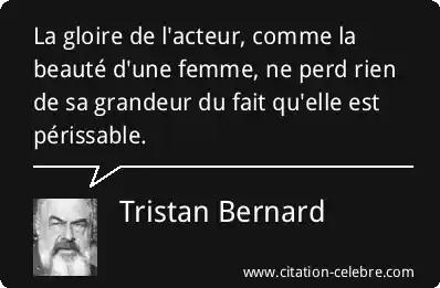 La gloire de l'acteur, comme la beauté d'une femme, ne perd rien de sa grandeur du fait qu'elle est périssable.