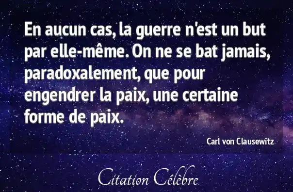 En aucun cas, la guerre n'est un but par elle-même. On ne se bat jamais, paradoxalement, que pour engendrer la paix, une certaine forme de paix.