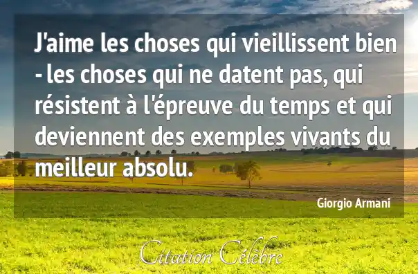 J'aime les choses qui vieillissent bien - les choses qui ne datent pas, qui résistent à l'épreuve du temps et qui deviennent des exemples vivants du meilleur absolu.