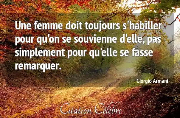 Citation Giorgio Armani femme : Une femme doit toujours s'habiller pour qu'on se souvienne d'elle,...