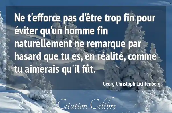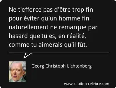 Ne t'efforce pas d'être trop fin pour éviter qu'un homme fin naturellement ne remarque par hasard que tu es, en réalité, comme tu aimerais qu'il fût.