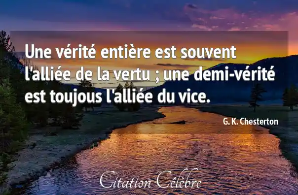 Une vérité entière est souvent l'alliée de la vertu ; une demi-vérité est toujous l'alliée du vice.