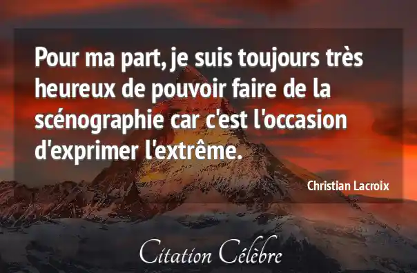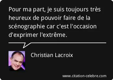 Pour ma part, je suis toujours très heureux de pouvoir faire de la scénographie car c'est l'occasion d'exprimer l'extrême.