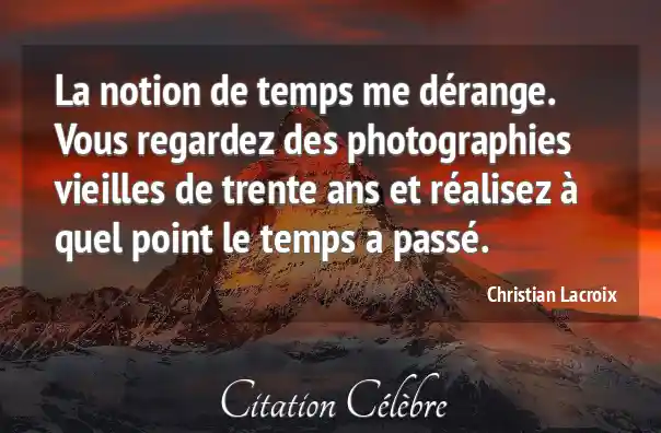La notion de temps me dérange. Vous regardez des photographies vieilles de trente ans et réalisez à quel point le temps a passé.