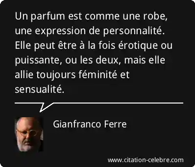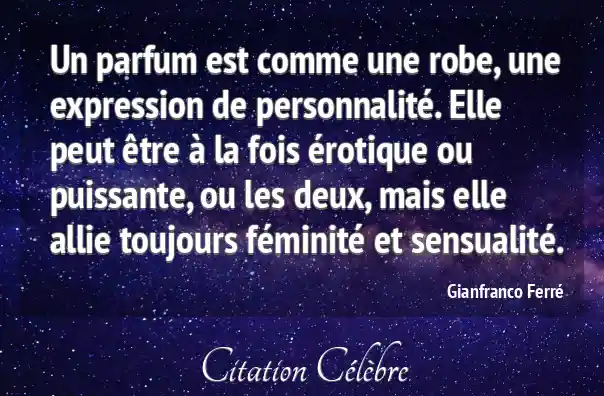 Un parfum est comme une robe, une expression de personnalité. Elle peut être à la fois érotique ou puissante, ou les deux, mais elle allie toujours féminité et sensualité.