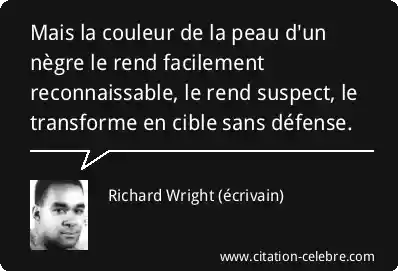 Mais la couleur de la peau d'un nègre le rend facilement reconnaissable, le rend suspect, le transforme en cible sans défense.