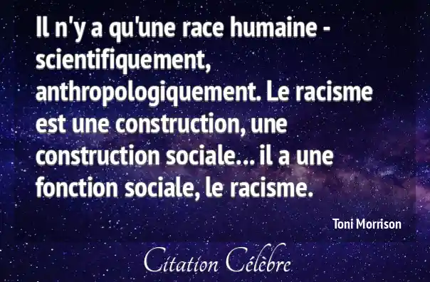 Il n'y a qu'une race humaine - scientifiquement, anthropologiquement. Le racisme est une construction, une construction sociale... il a une fonction sociale, le racisme.