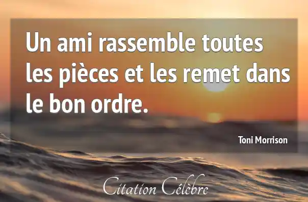 Citation Toni Morrison ami : Un ami rassemble toutes les pièces et les remet dans...