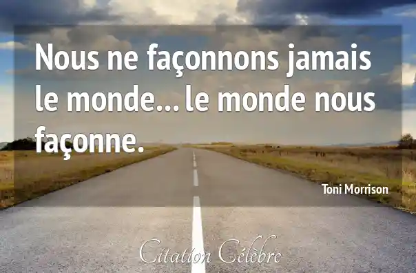 Citation Toni Morrison monde : Nous ne façonnons jamais le monde... le monde nous façonne....