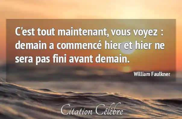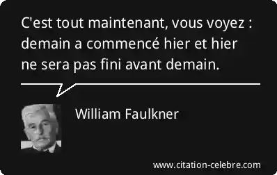 C'est tout maintenant, vous voyez : demain a commencé hier et hier ne sera pas fini avant demain.