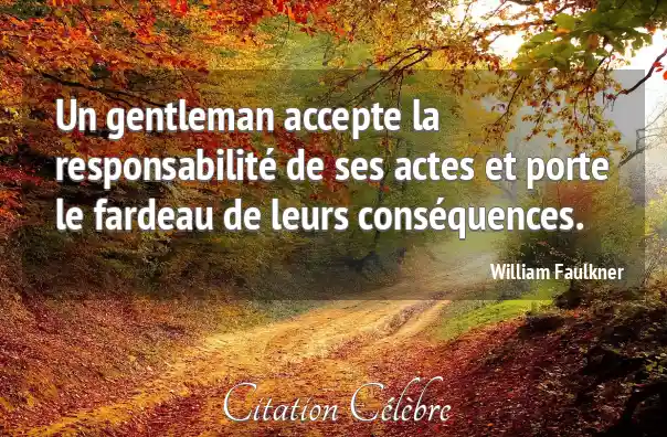 Un gentleman accepte la responsabilité de ses actes et porte le fardeau de leurs conséquences.
