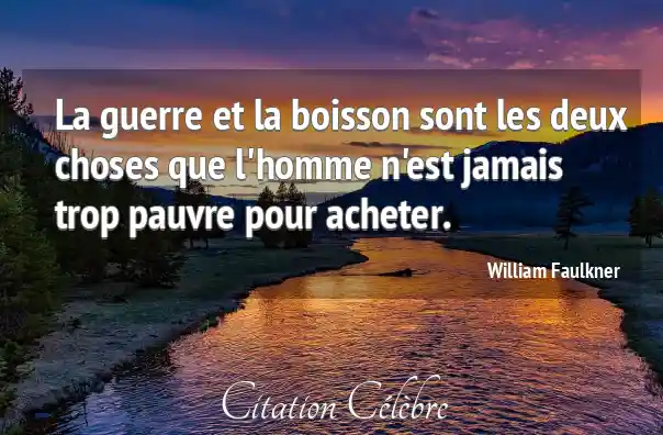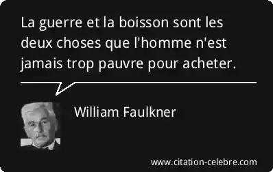 Citation William Faulkner homme : La guerre et la boisson sont les deux choses que...
