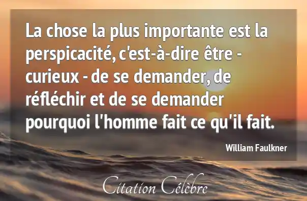 La chose la plus importante est la perspicacité, c'est-à-dire être - curieux - de se demander, de réfléchir et de se demander pourquoi l'homme fait ce qu'il fait.