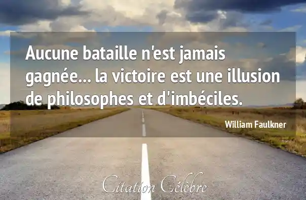 Aucune bataille n'est jamais gagnée... la victoire est une illusion de philosophes et d'imbéciles.