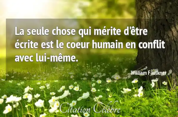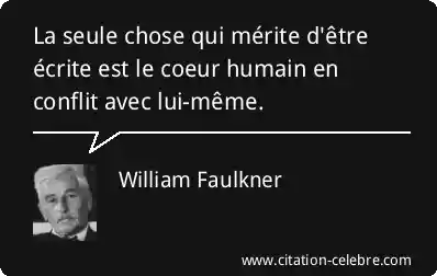 La seule chose qui mérite d'être écrite est le coeur humain en conflit avec lui-même.