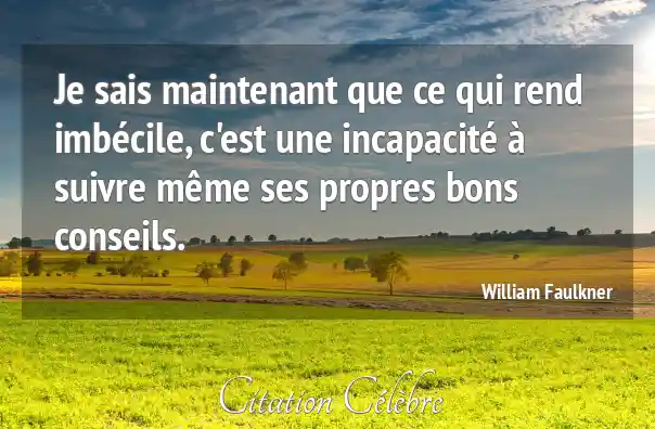 Je sais maintenant que ce qui rend imbécile, c'est une incapacité à suivre même ses propres bons conseils.
