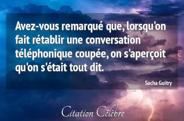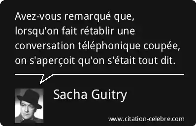 Avez-vous remarqué que, lorsqu'on fait rétablir une conversation téléphonique coupée, on s'aperçoit qu'on s'était tout dit.