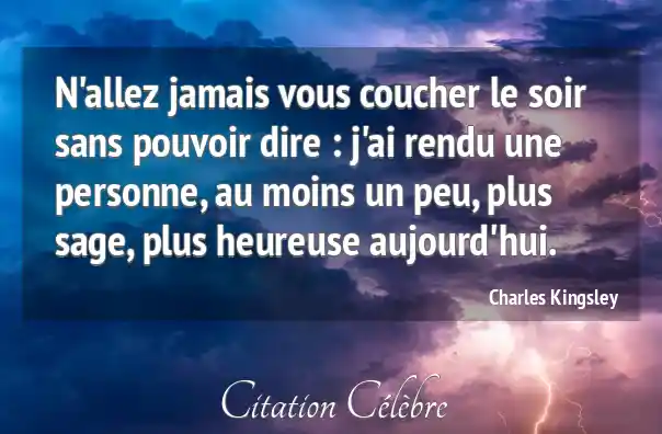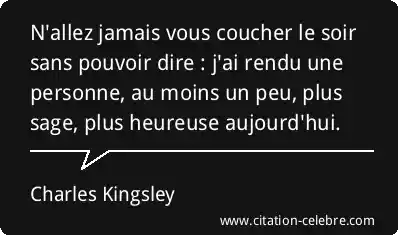 N'allez jamais vous coucher le soir sans pouvoir dire : j'ai rendu une personne, au moins un peu, plus sage, plus heureuse aujourd'hui.