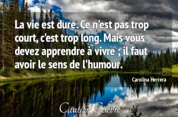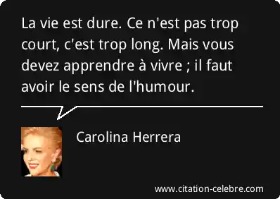 La vie est dure. Ce n'est pas trop court, c'est trop long. Mais vous devez apprendre à vivre ; il faut avoir le sens de l'humour.