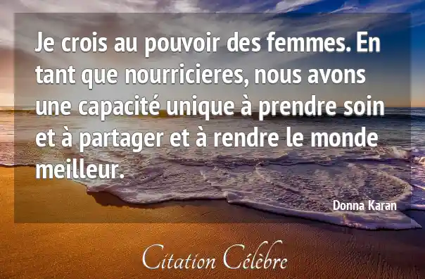 Je crois au pouvoir des femmes. En tant que nourricieres, nous avons une capacité unique à prendre soin et à partager et à rendre le monde meilleur.