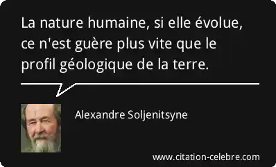 La nature humaine, si elle évolue, ce n'est guère plus vite que le profil géologique de la terre.