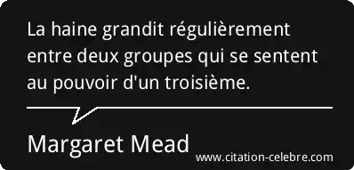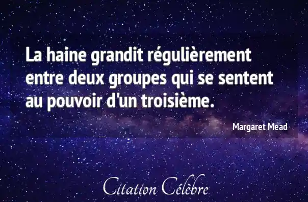 La haine grandit régulièrement entre deux groupes qui se sentent au pouvoir d'un troisième.