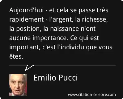 Aujourd'hui - et cela se passe très rapidement - l'argent, la richesse, la position, la naissance n'ont aucune importance. Ce qui est important, c'est l'individu que vous êtes.